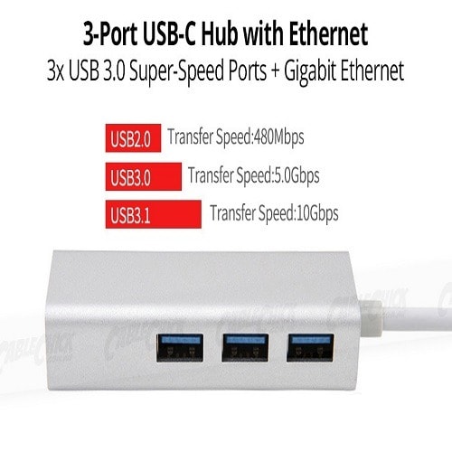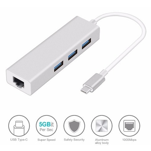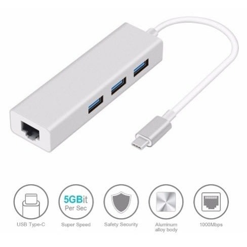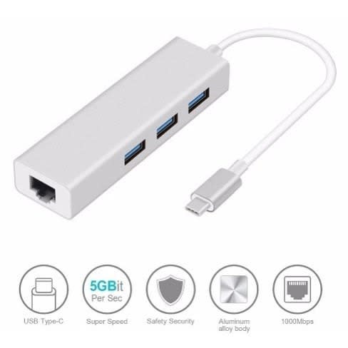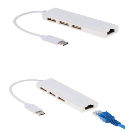 1 x USB 3.1 to 3 Port USB 3.0 Hub with RJ45 Ethernet Adapter