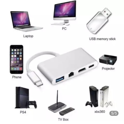 5 In 1 Type- C 3.1 To Hdmi Video Port + Rj45(gigabit Ethernet) +usb 3.0 Port + Type C