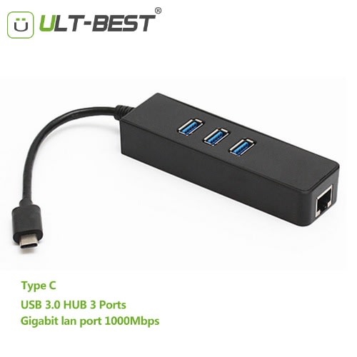 USB 3.1 Type C USB-C to 3 Ports USB 3.0 Hub with RJ45 LAN Card Gigabit Ethernet Adapter Connector Cable