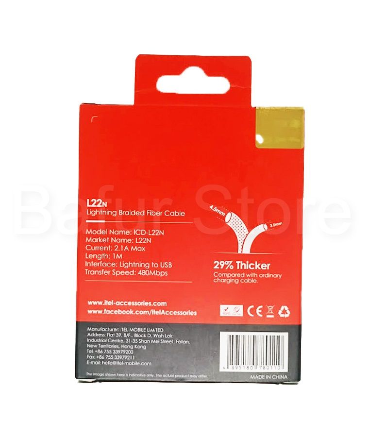 EXTRA STRONG, EXTRA DURABLE FAST CHARGING BRAIDED FIBRE LIGHTNING USB CABLE2.1A Fast Charging iPhone USB CableThe itel Extra Durable & Extra Strong lightning cable now! The cable has universal compatibility, an upgraded chip, a reinforced connector and comes at the length of 1M.