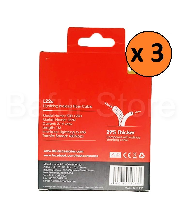 EXTRA STRONG, EXTRA DURABLE FAST CHARGING BRAIDED FIBRE LIGHTNING USB CABLE2.1A Fast Charging iPhone USB CableThe itel Extra Durable & Extra Strong lightning cable now! The cable has universal compatibility, an upgraded chip, a reinforced connector and comes at the length of 1M.