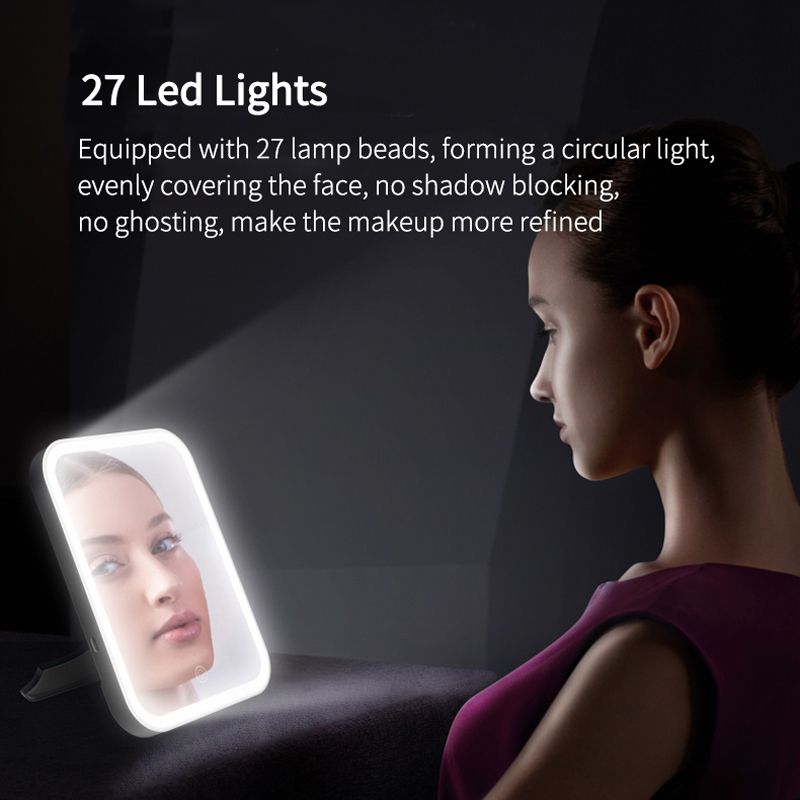 3 Colors Lights Adjustable Brightness Led Rechargeable LED Cosmetic Mirror Makeup Mirror With 27 Led Lamps Plugging And Charging Description:1.Equipped with 27 lamp, forming a circular light, evenly covering the face, no shadow blocking, no ghosting, make the makeup more refined2.3 colors lights and 3 adjustable brightness, meet your different needs for different makeup3.Brightness up to525lux, much cleaner than ordinary makeup mirror, the pores are so clear that daily skin care is more targeted4.Faint light, suitable for daily skin care; Medium light, suitable for full face makeup; High light, detail skin care makeup5.Touch switch, press once to turn on the light, long time pressing to adjust the brightness6.Foldable stand, it's portable and easy to takeNote: There are 2 type of makeup mirrors in this link, one is single color light, it's not rechargeable, plug in while using it. The other one is 3 colors light, USB recharable, can also be used while charging. 1.Please make sure your address in is matched with your shipping address before you make payment.2.Russian buyers, please leave us your full name (mostly includes 3 words), which is very ant,if not sometimes you may can't delivery the package. 1. All products are in standardized packing, usually we use plastic bag to pack the products.just as follows:2. We will carefully check your order and the package to make sure everything is in good condition before ship out.3. The packages may be slightly damaged during long-time transportation, but it doesn't affect the effect of our products,please no worry.4.If you want products packed perfectly (such as for gifts etc.), please first, we can send the parcel with special package to avoid damage, but you need pay some extra fee.Please click here to pay freight or extra fee. Thanks! 1.We will send out the order in 2-5 working days, and it needs almost 7-40 days from China to you.(different countries with different shipping way, so use different time to get goods)2.As you know, the delivery time is depend on the shipping company, the air line, the custom and the local post office, so we are not able to control it accurately.3.If the parcel has not arrived in expected time, please feel free to , we will track it and handle it with you. 1.Your satisfaction and positive feedback are quite helpful for us.Please leave positive feedback andall5 stars if you are satisfied with our it and services.2.If you have any suggestions with our it or services,please feel free to first before you leave negative feedback.We will do our best to solve any probl and provide you with the best customer servicesto let you satisfied.