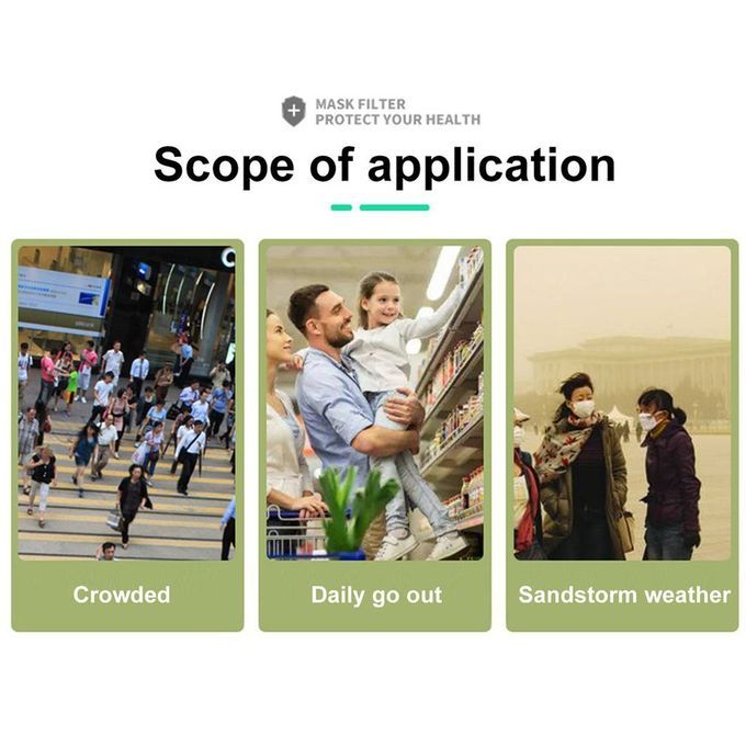 Des ription: The filter an effe tively blo k the air pollution on both sides of the bridge of the nose, and the non-woven fabri prote tive layer and meltblown fabri filter layer are soft and skin-friendly.