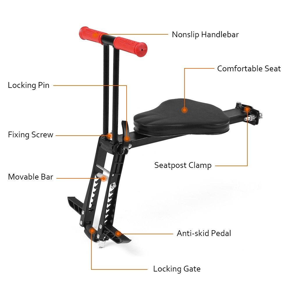 This bicycle front seat allows you to keep an eye on your child and the road at the same time. It is foldable into a compact size for easy storage and transport.