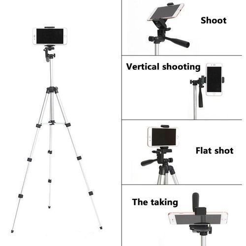 Tripod is perfect for taking photos in birthday party, family dinner, company celebration, camping or sightseeing. Made of the finest aluminum alloy with only 0.8lbs (360g), super lightweight to carry. Non-skid rubber feet for uneven ground. Special triangle stabilize structure to hold up more weight up to 4.4lbs (2.0kg), strong enough for iphone/Galaxy/Huawei or other brand smartphones, Gopro and entry-level SLR.. A universal Bluetooth helps to taking photos at a distance of up to 30 feet. A universal smartphone holder that fits for almost every kind of phones in the market and a standard Gopro mount.. Order for this now on