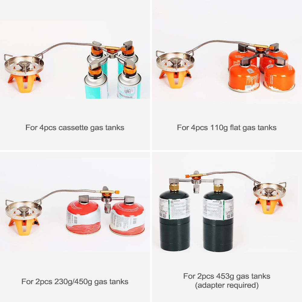 Designed with 4 ports that can work with up to 4 gas tanks, supplying more gas f-u-e-ls for your camping stove.