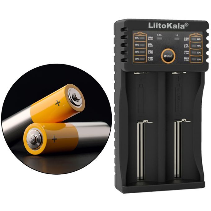 Four LED indicators shows the charging status (25%, 50%, 75%, 100%) and also shows the battery type when insert into battery (1.2V Ni-MH , 3.2V Li-Fe, 3.7V Li-ion, 3.85V li-ion)