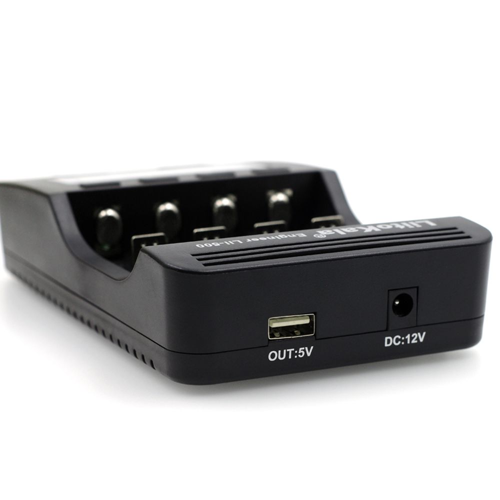 USB output can charge your 5V electronic devices (such as phones) when putting the Li-ion batteries in the slots.