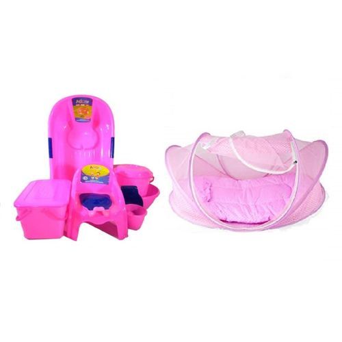 Insulated double wall tub helps maintain warm water temperature l Deluxe newborn sling l Use in sink, infant tub or adult tub l With plush bolster