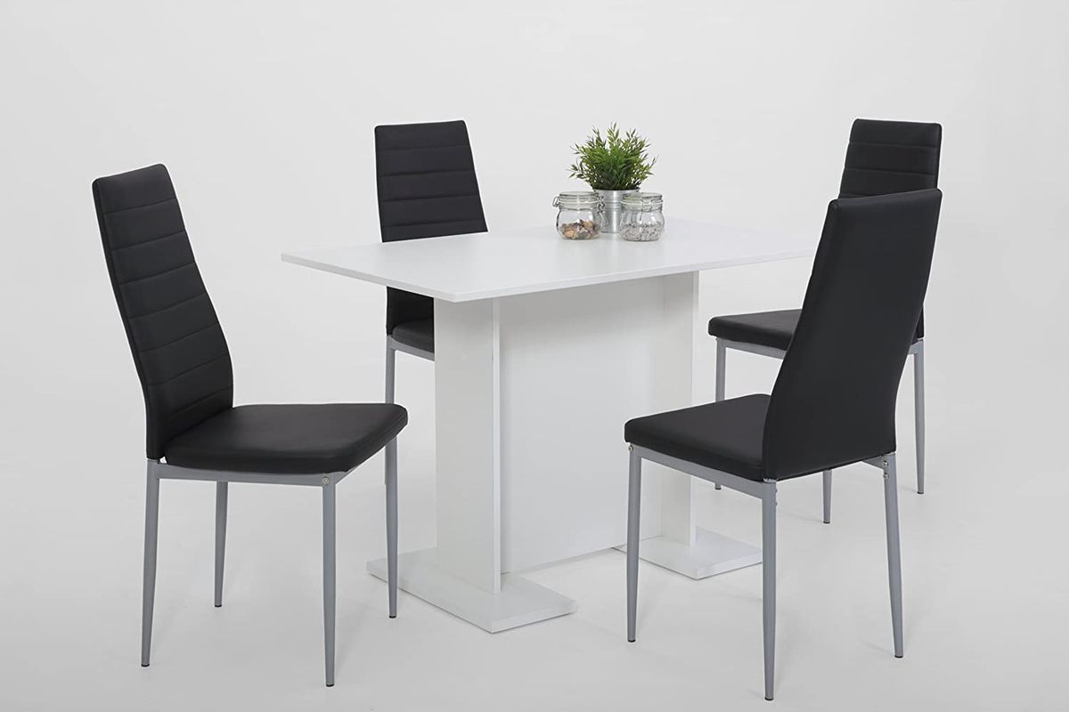 The surface is easy to clean, so it doesn't matter if something goes wrong while eating. The table also features exemplary and sustainable forest management. In combination with comfortable dining room chairs and decorative elements such as candle holders, vases or bowls, an inviting dining area for family and friends is created in just a few simple steps.Modern and stylish: With its successful design, this dining table creates a particularly beautiful place for social gatherings. The pretty wooden table top is a great contrast. This also ensures the right stability. Great importance was attached to quality when selecting the materials and processing the table. The furniture is therefore robust and durable. so it fits perfectly into the different furnishing styles. Thanks to its size, several people can easily find a place. This makes the dining table the ideal piece of furniture for cozy dinners with family or friends.