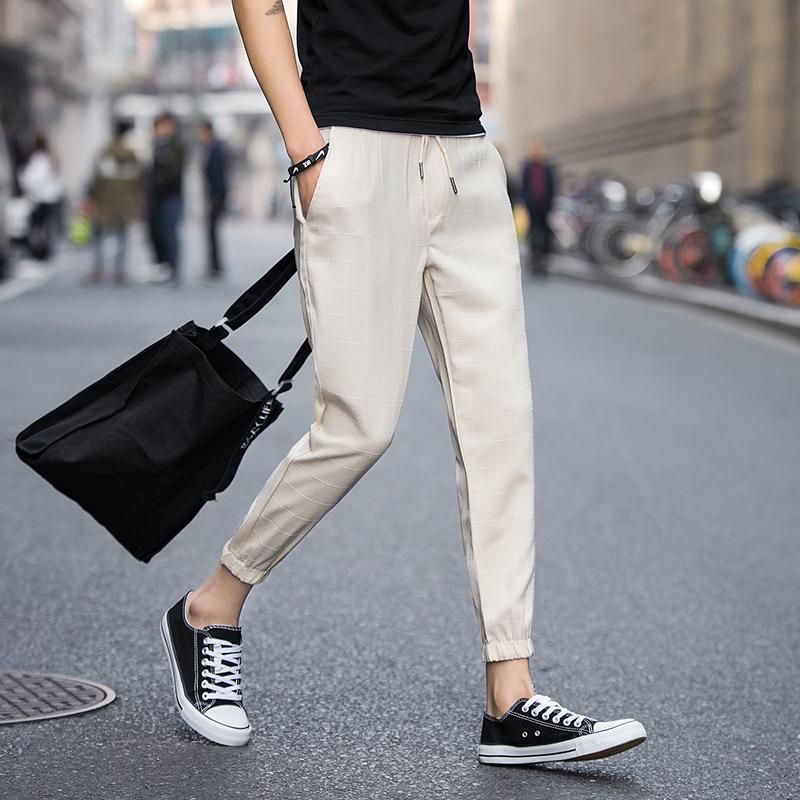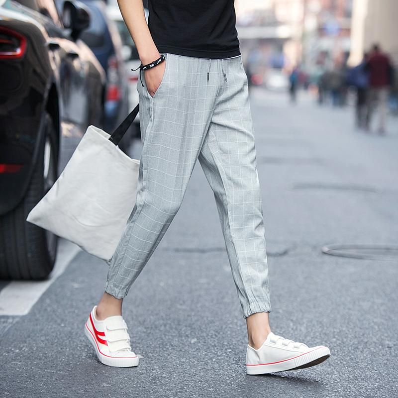 2020 longitud del tobillo de lino tela escocesa de puro algodon pantalones hombres pantalones Jogger de Hip Hop pantalones hombres pantalones de chandal Streetwear pantalones de los hombres S-5XL