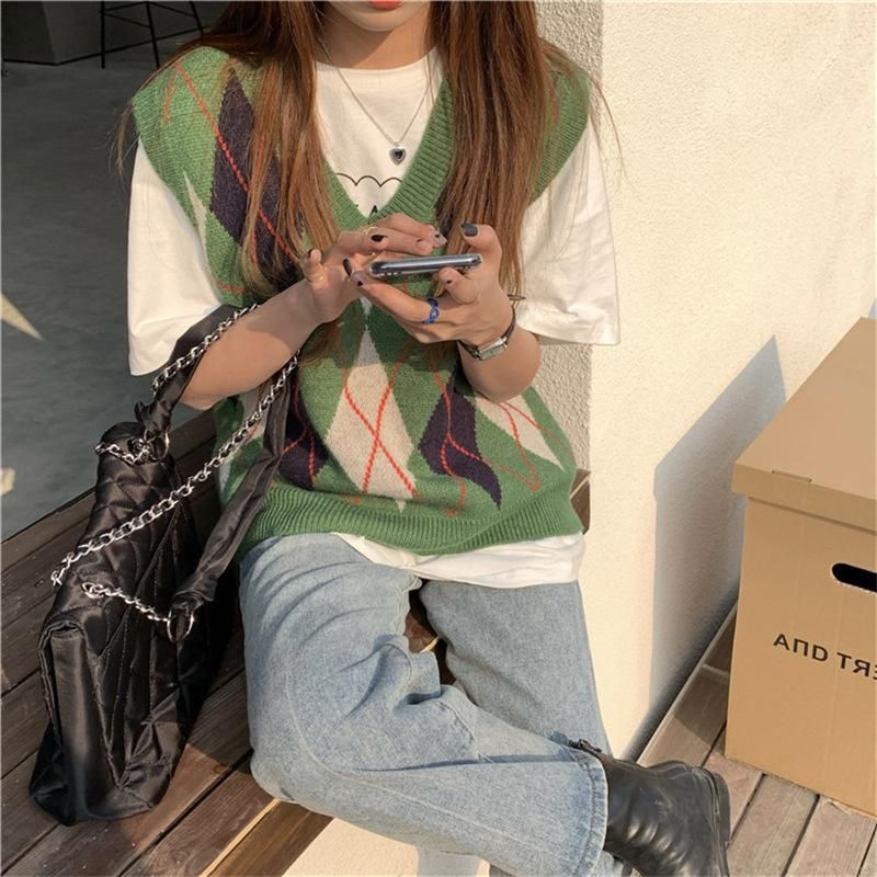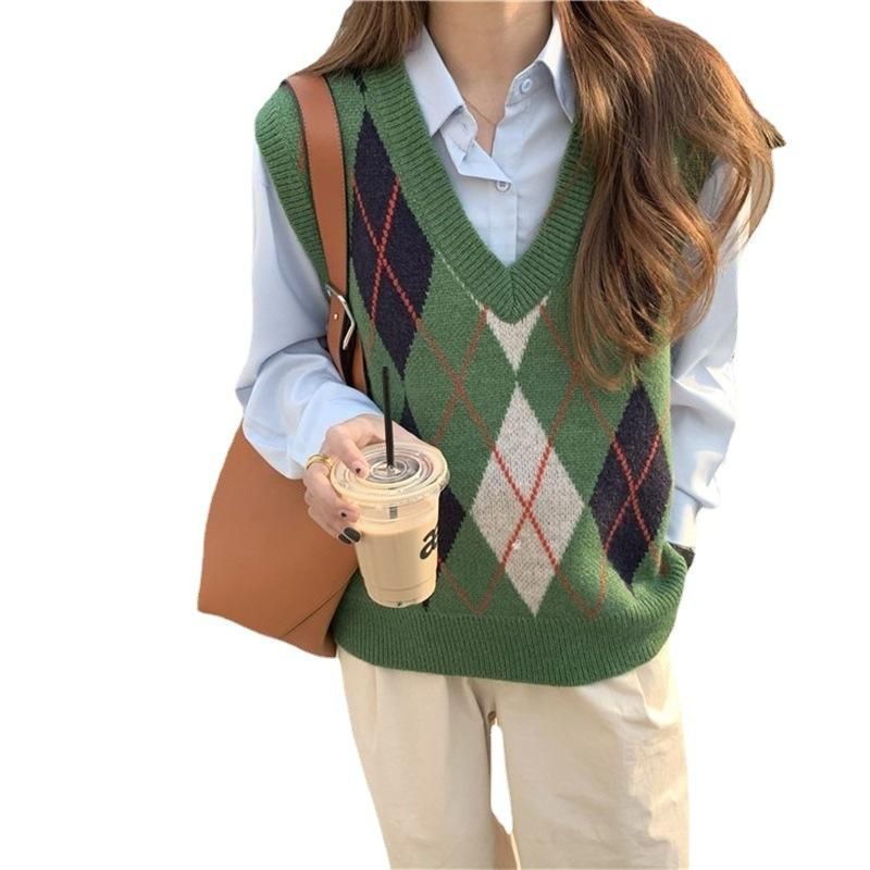 Buy Lingge Knitted Vest Women's 2022 Autumn/Winter New Korean Edition Lazy Sweater Tank Top with V-neck in Nigeria