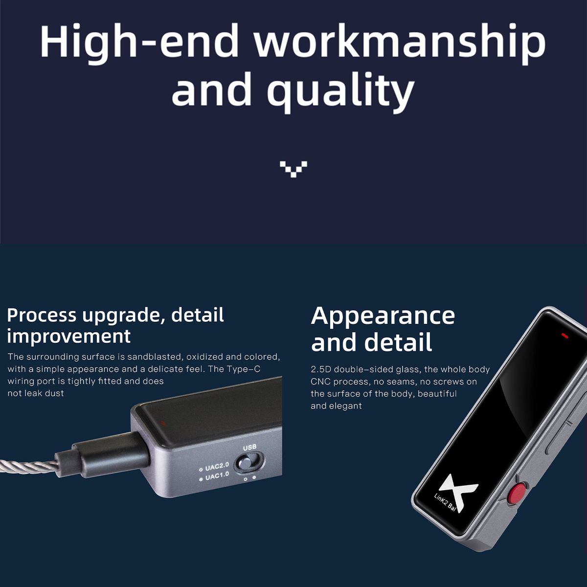 Overview:Link2 Bal is an USB DAC & balanced headphone amplifier specially designed for mobile phones. It uses high PSRR LDO to optimize the design of the mobile phone supply to further reduce the noise. The DAC uses dual CS43131 chips, better decoding performance, with extremely low noise and higher resolution, which greatly improves the sound quality. This product is small in size, no battery, plug and play, can be connected to IOS, Android mobile phones/tablets, also can be connected to computers, support up to PCM32Bit/384kHz, DSD256 songs, greatly improving the sound quality of your phone or PC.