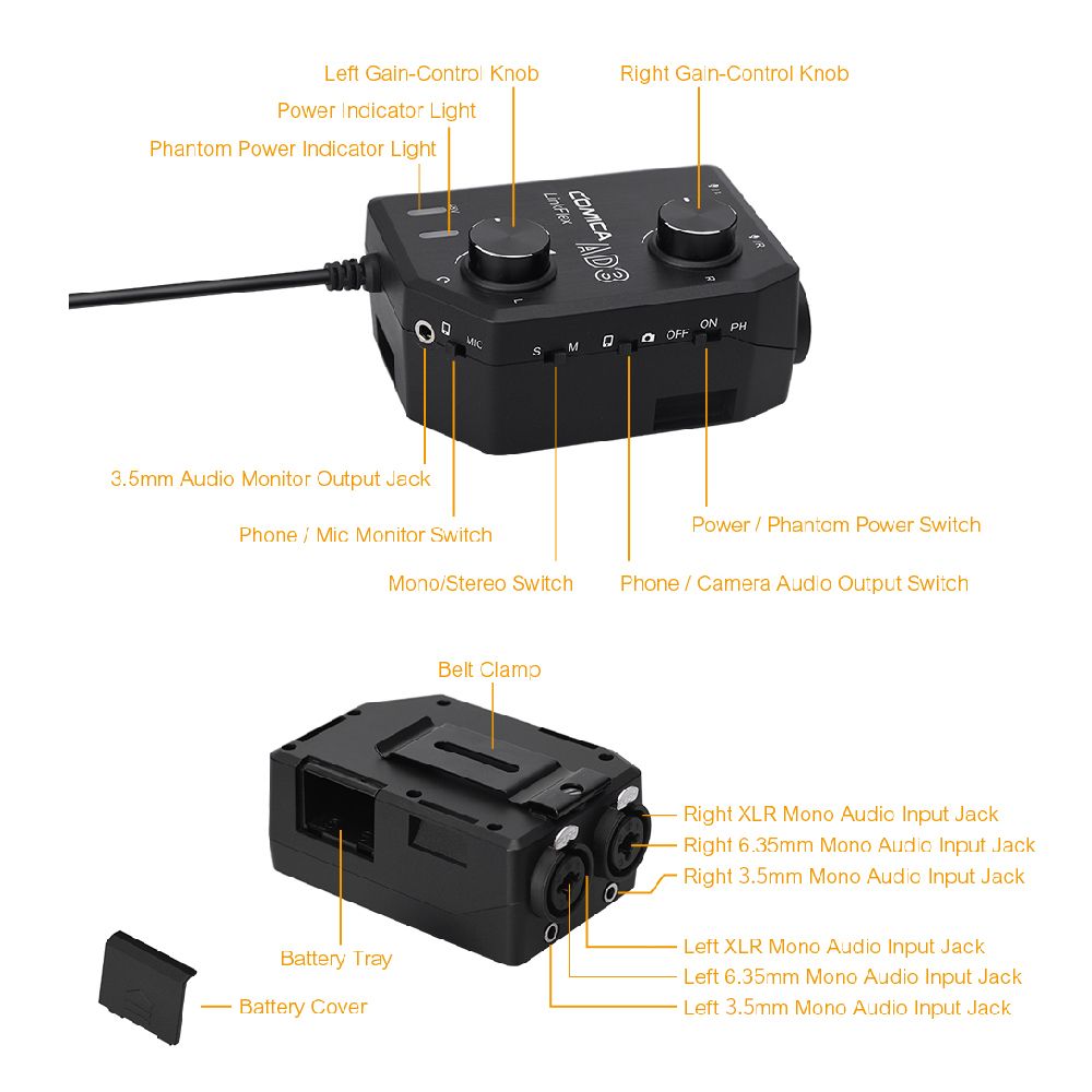 Packing List:1 * CoMica LINKFLEX AD3 Audio Preamp Mixer