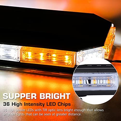 - R BRIGHT: The led roof top strobe light bar has 36 Hi-intensity LED hips with high visibility in daylight, midnight, raining or fog days. Improve the driver seurity and avoid aidents.