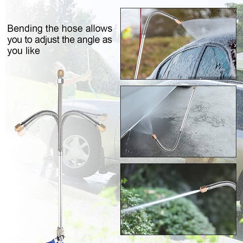 Different nozzles Different sprays The corrugated can be bent to spray. Main Features Features Aluminum alloy, durable, rust, and aging resistance have good corrosion resistance. Simple design, easy to carry, and easy to operate. A high-preure jet, small water preure can also wash the car. Easy To Use Just one-step to connect your garden hose and simply start your cleaning, hydro jet power washer wand suitable for connecting all 3/4” standard and 1/2” garden hose connectors with two spray tips. Widely Application A portable power washer wand can be widely used for cleaning such as car washing, window cleaning, residential garden ground steps fence mo, and pets bathing, etc. Ideal for cold water preure electric washing machines. 2 Nozzles for Better Usage Coming with 2 nozzles, a jet nozzle, and a fan spray nozzle for different situations. The water stream from nozzles is strong enough to clean off the dirties. Using Methods Specifications