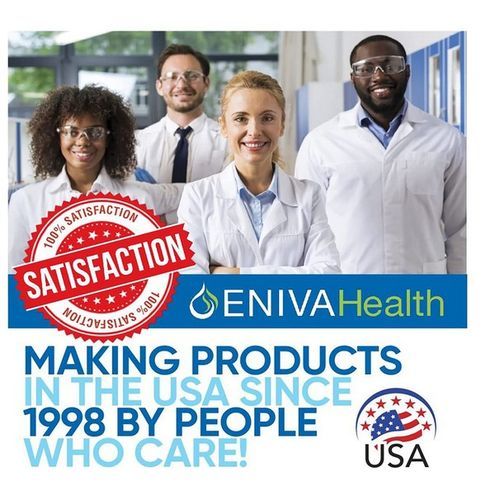 DOCTOR FORMULATED. Made in the USA at the Eniva Health 3rd party certified manufacturing facility.