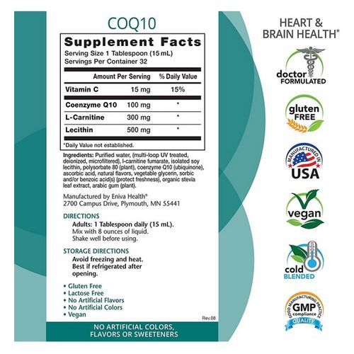More than just CoQ10 alone .... Eniva® CoQ10+ supplement provides a generous serving of multiple healthy heart and brain nutrients to help you live your best life ever. Readily absorbed liquid CoQ10, Lecithin, L-carnitine and Vitamin C nourish cardiovascular, neurologic and immune systems.*