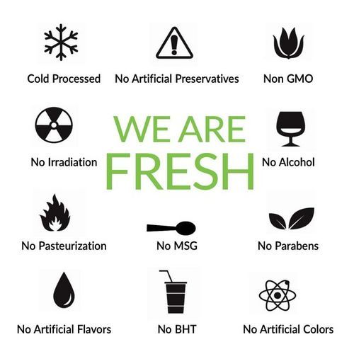 ZERO SUGAR. No Artificial Colors or Flavors. Gluten Free. Diabetic Friendly. Vegetarian Friendly. No Fish Ingredients. Lactose Free. No Irradiation No Pasteurization. Cold Processed.