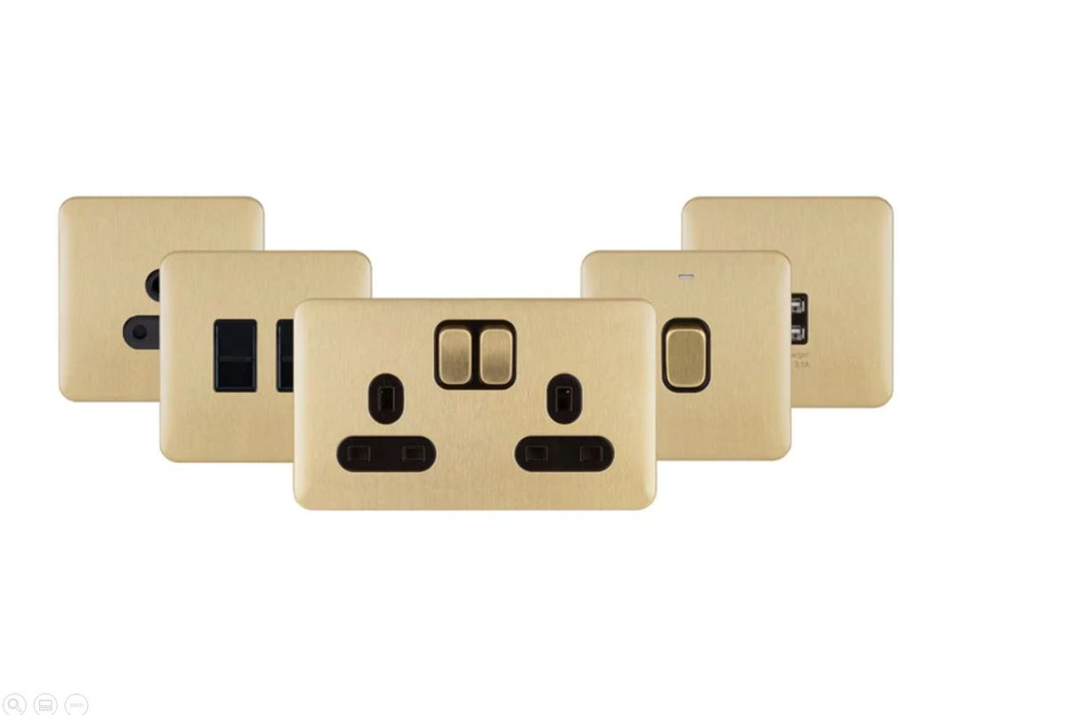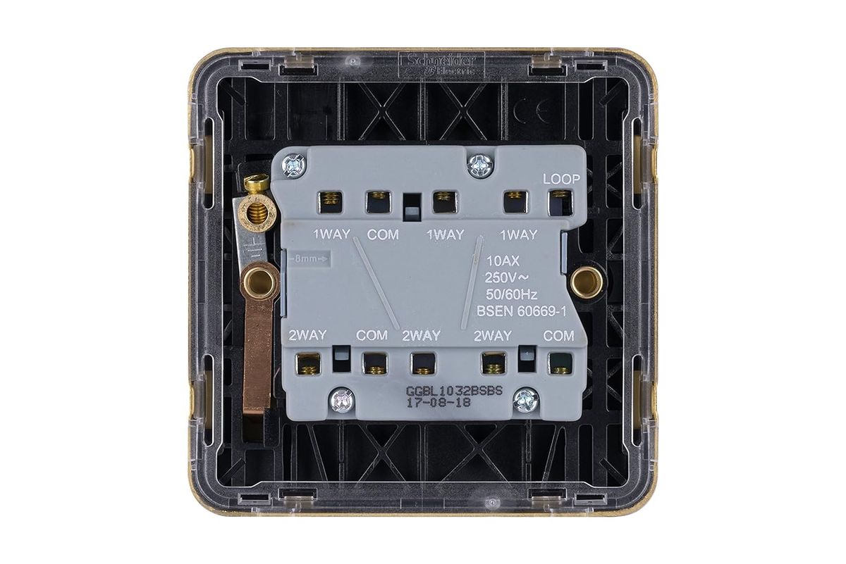 GGBL1022BSB - 3 gang 2 way - 10AX Satin Brass Plate Switch with Black interior |