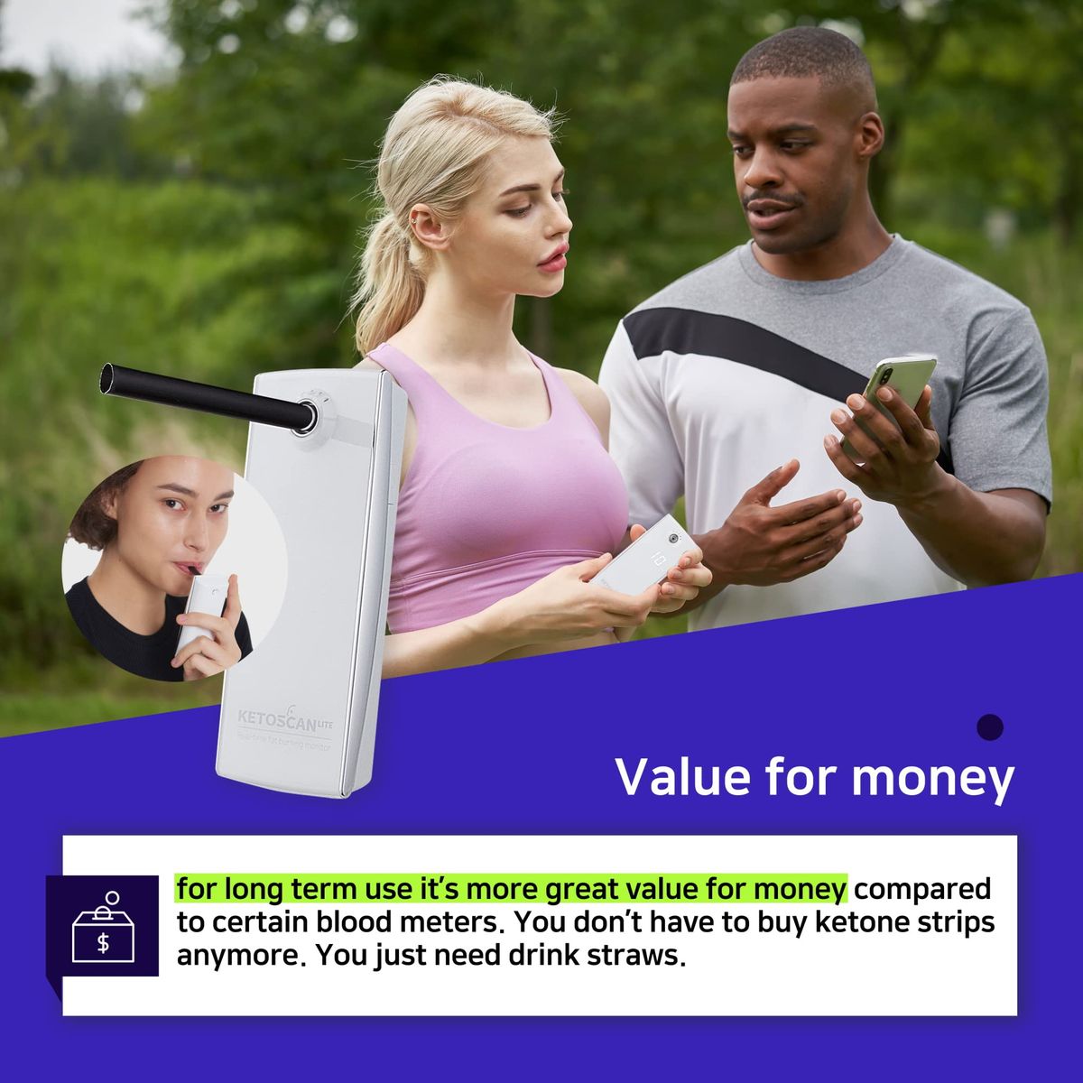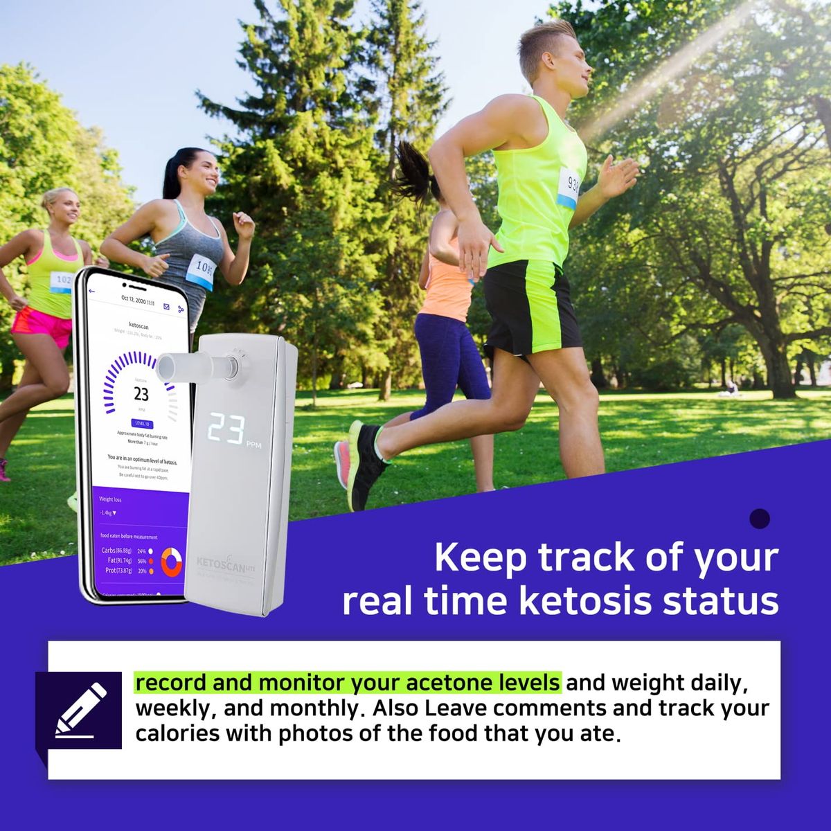 KETOSCAN Lite Breath Ketone Meter, Diet & Fitness Tracker - Monitor Your Fat Metabolism or Level of Ketosis on Low carb, Ketogenic or Any Nutrition & Fitness Program. MADE IN KOREA