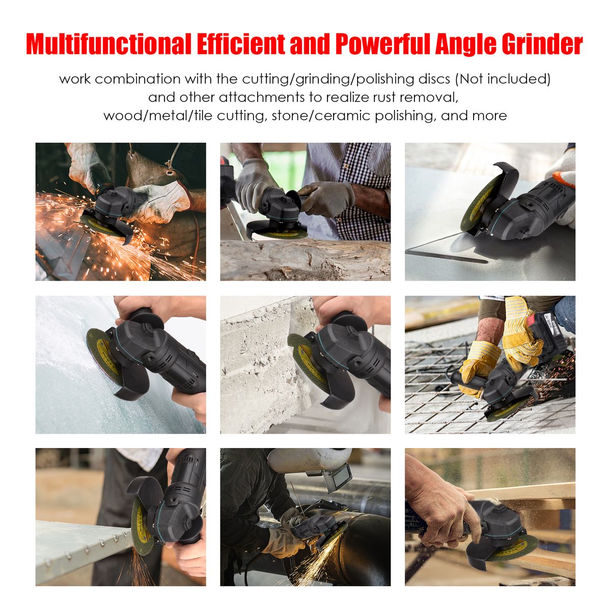 Multifunctional Efficient and Powerful Angle Grinder: work combination with the cutting/grinding/polishing discs(Not included) and other attachments to realize rust removal, wood/metal/tile cutting, stone/ceramic polishing, and more.