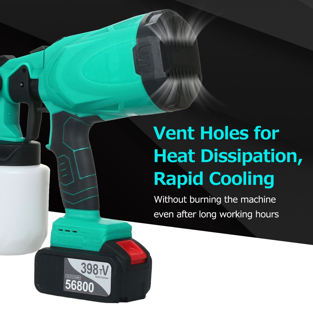 Cordless Design: paint sprayer was powered by the detachable lithium battery, 2000mAh/4000mAh battery capacity has the advantage of long duration.