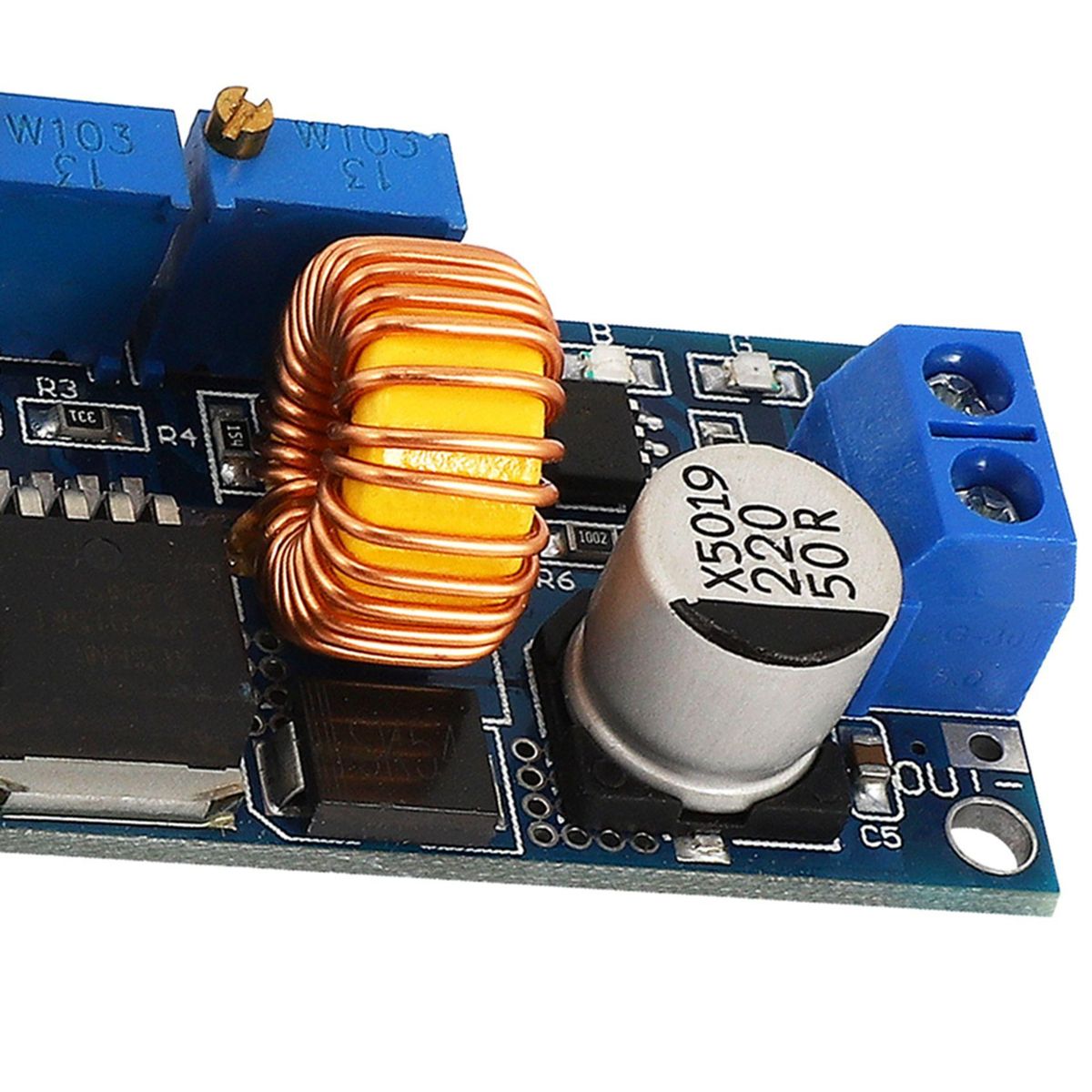 Lithium Battery Charger Module Driver Step Converter1. High power, high efficiency, 5A, low ripple;2. Triple:(1) Use as a normal blood pressure modules with overcurrent protection capability;(2) As the various voltage lithium batteries, batteries, nickel-cadmium nickel-metal hydride batteries (battery) charger for solar panels, wind turbines and other occasions;(3) Used as a high-power LED constant current drive module;