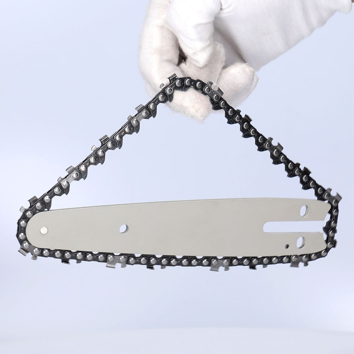 This is a quality electric chainsaw replacement guide plate and sawchain set. The sawchain is made from 65# Mn material, has high hardness, high cutting performance and corrosion and rust resistance. Heat treated and quenched rivets make closer connection between chainlinks. The guide plate is hardened by quenching process, high tensile resistance, high density and wear-resisting. Easy to replace, is a perfect replacement for your wood cutting chainsaw.