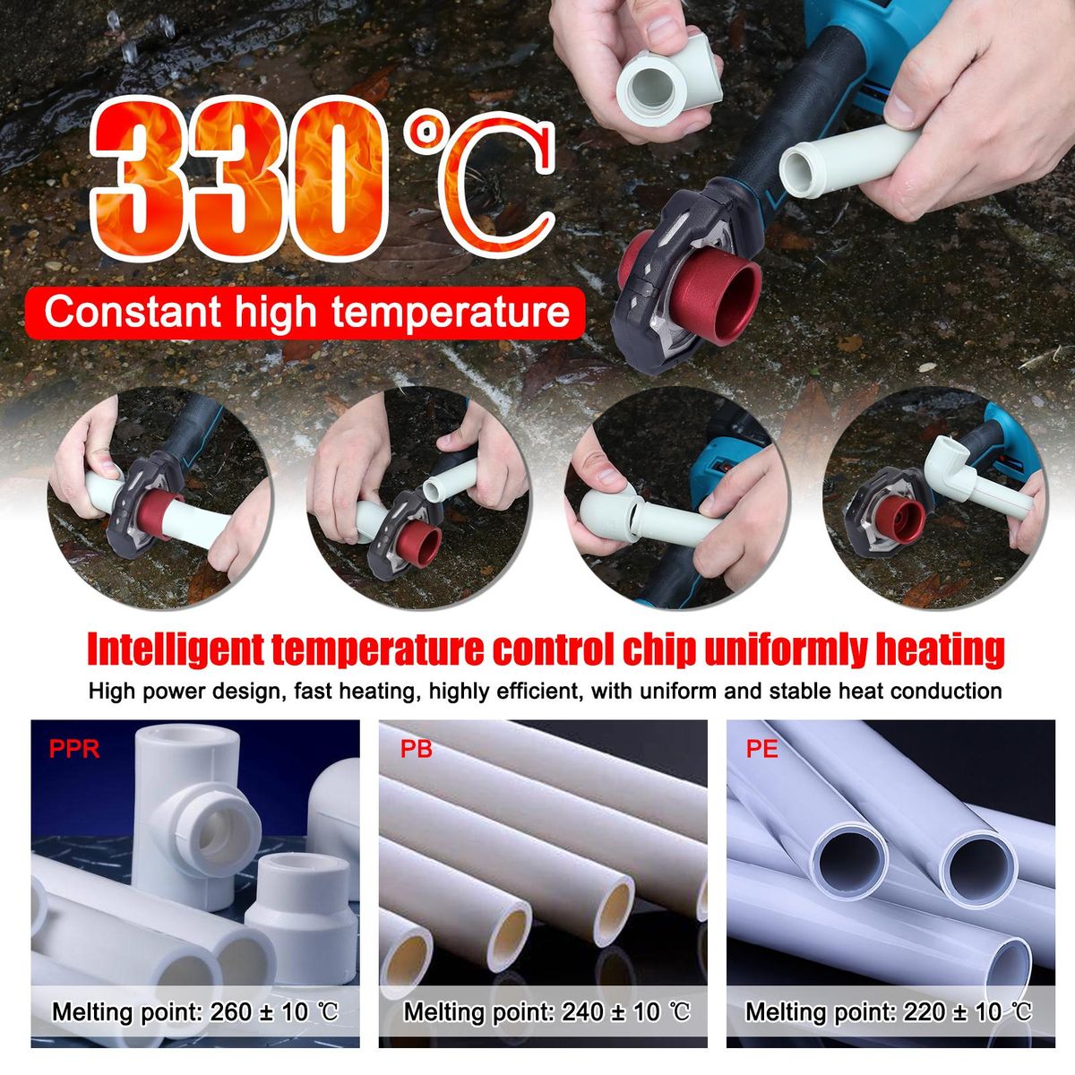 Buy Lithium Power Electric Water Pipes Melting Device Household PPR Welding Machine with 20mm 25mm 30mm Replacement Heads in Nigeria