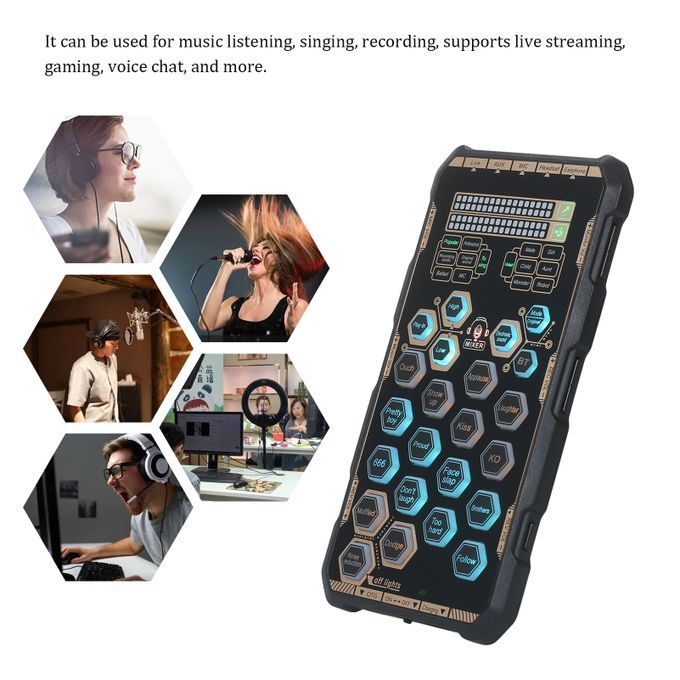 The live sound card has 14 kinds of funny sound effects including show up, kiss, applause, laughter, face slap, KO, and more, adding interesting atmosphere sounds during live broadcast.