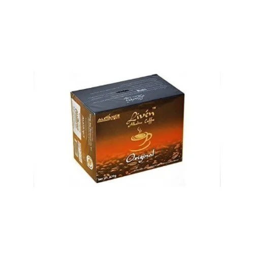Alliance In Motion Global Liven Alkaline CoffeeCoffee without Limits! Enjoy your favorite Coffee time with the Deliciously Healthy Liven Coffee. The First Alkaline Coffee with lots of great health benefits made of Premium Arabica Coffee beans.The World’s First Alkaline Coffee-Ceuticals with lots of health benefits coming from 16,000 phytonutrients from 131 natural ingredients!Liven Alkaline Coffee is high quality and highly regarded for its distinct taste and aroma because it is made of the finest class of Arabica Coffee beans, and fortified with the COMPLETE PHYTO- ENERGIZER!Coffee Arabica is a species of coffee indigenous to Ethiopia. It is also known as the “coffee shrub of Arabia” , “mountain coffee” or Arabica coffee. It is considered to produce better coffee than coffee canephora (Robusta). Arabica also contains less caffeine and produces better taste than Robusta. Arabica coffee beans are selected as specialty coffee because of its unique, delicate flavor and aroma.Complete Phyto-Energizer is the most nutritionally dense food concentrate. It contains 16,000 phytonutrients that acts as a very powerful antioxidant and anti-aging supplement. It is the First Mega-Nutritionals with ingredients working in synergy to produce maximum health benefits for the body.Liven Alkaline Coffee Benefits: • Lowers cholesterol level• Protects against heart disease and complications• Helps prevent cancer of any origin• Controls high-blood pressure• Prevents degenerative diseases such a Arthritis and Rheumatism• Reduces the risk of developing Type II Diabetes• Prevents Parkinson’s Disease• Enhances, nourishes, strengthens and balances the Immune System• Detoxifies the Body• Offset damage of smoking and heavy alcohol intake• Enhances sexual vitality• Rejuvenates the skin• Improves performance and endurance during exercise• Enhances concentration• Reduces fatigue• Heightens alertness• Increases sperm motility• Relieves headache• Promotes healthy blood circulation and cell regenerationPRODUCT DETAILS:Contents: 20 sachets/box