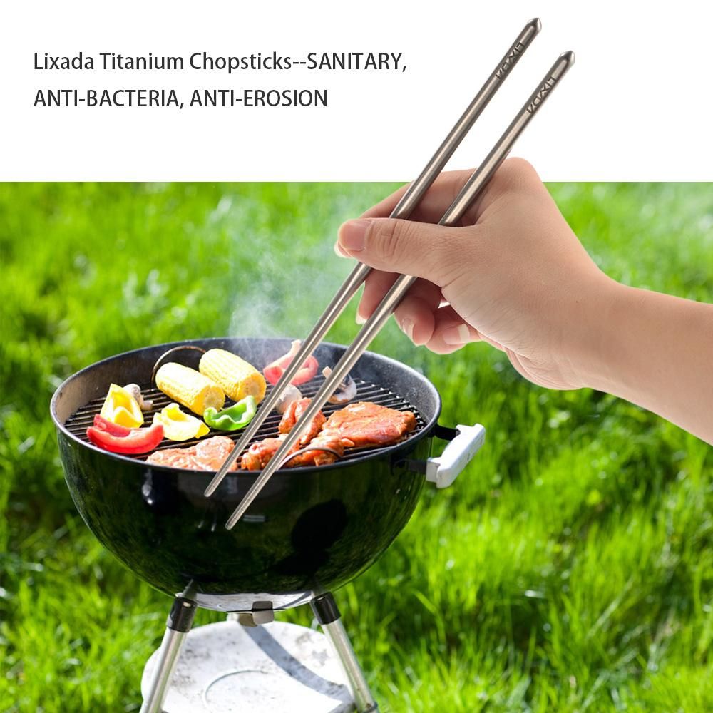 Buy Lixada 1 Pair of Titanium Lightweight Ultra-strong Square Reusable Chopsticks with Carrying Pouch Camping Utensils Outdoor 195mm/230mm in Nigeria