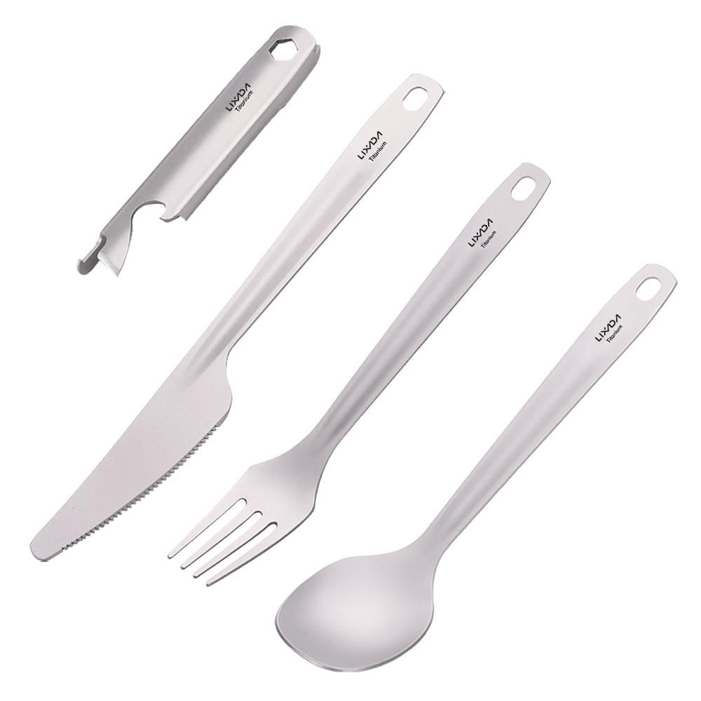 Buy Lixada 4-in-1 Titanium Flatware Cutlery Set Lightweight Dinner Spoon Fork Cutter with Multifunctional Storage Holder Bottle Opener for Camping Hiking Backpacking Picnic in Nigeria