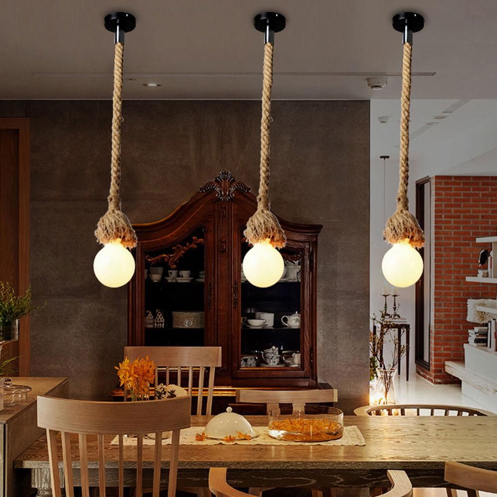 Buy Lixada 50cm AC220V E27 Single Head Vintage Hemp Rope Hanging Pendant Ceiling Light Lamp Industrial Retro Country Style Dining Hall Restaurant Bar Cafe Lighting Use in Nigeria