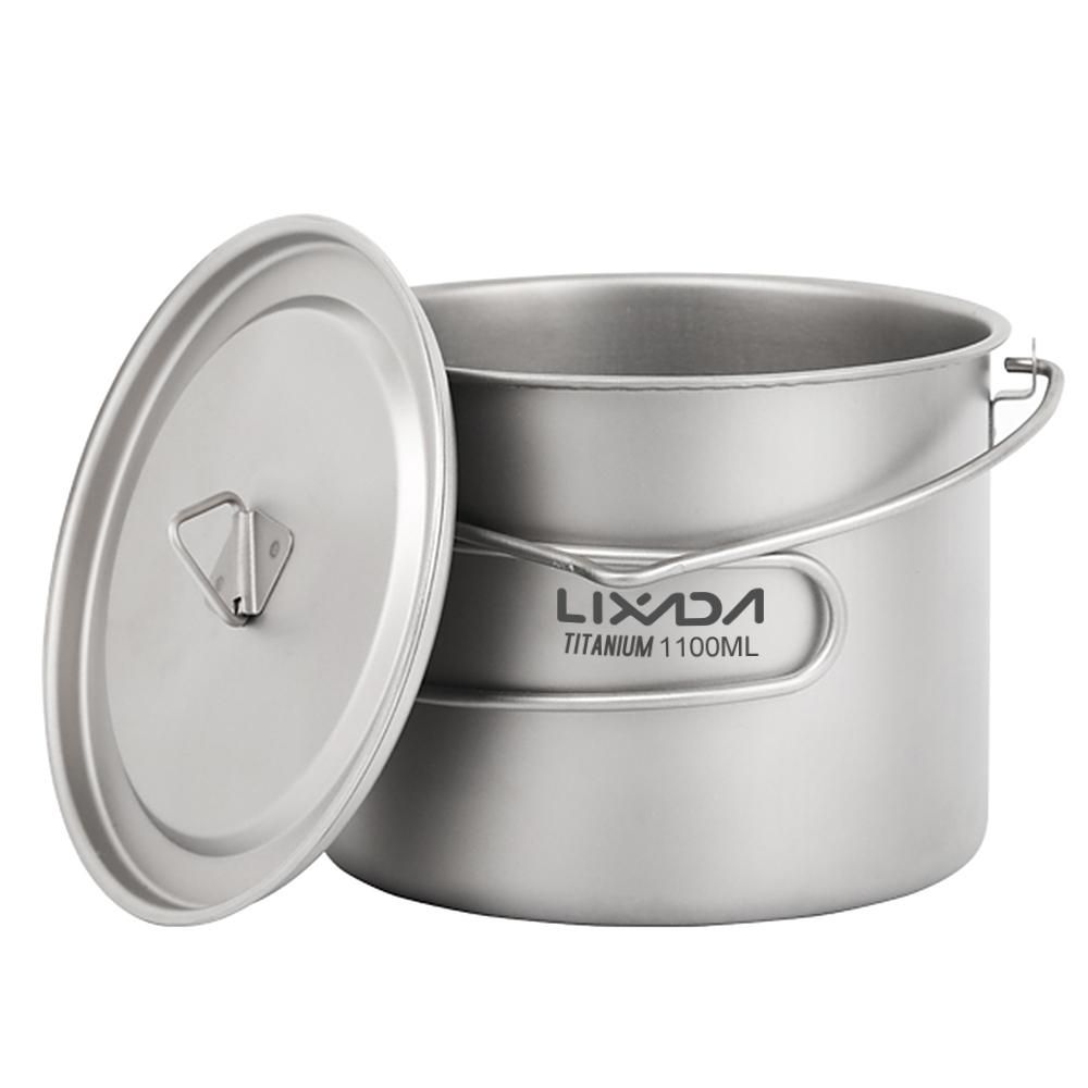 Buy Lixada 750ml/900ml/1100ml Ultralight Titanium Pot Water Mug Cup with Lid and Foldable Handle Outdoor Camping Cooking Picnic in Nigeria