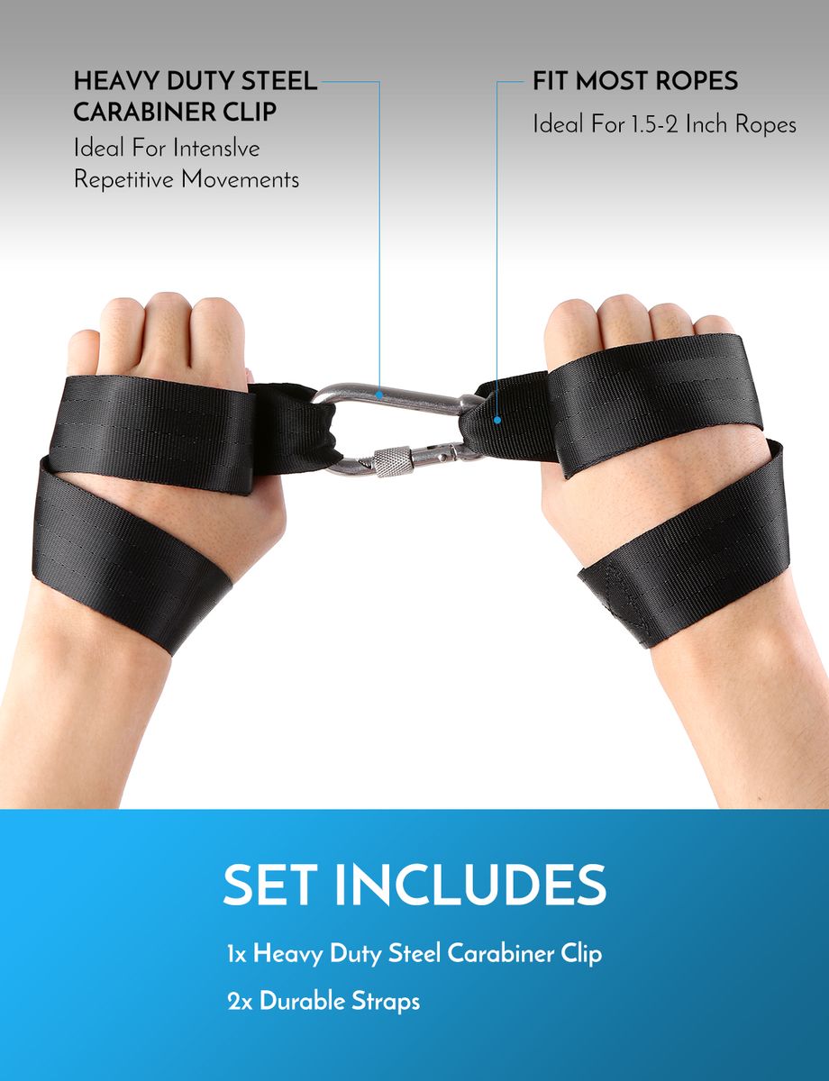 HIGH QUALITY amp; HEAVY DUTY - Anchor strap can hold up 1700 lbs tensile strength. Composed of tightly woven, durable, reinforced high quality nylon webbing our anchor strap will withstand the most intense and brutal workouts. Additionally, the carabiner is composed of 100% high strength stainless steel.