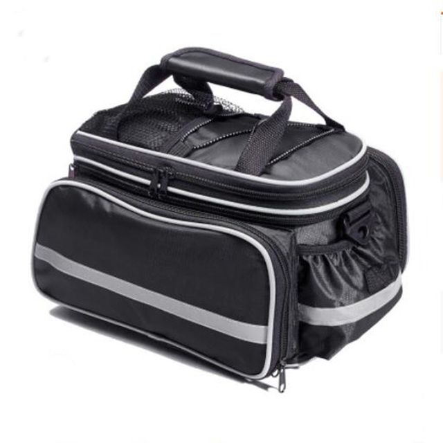 - Dimension of this bike bag: 1 main compartment has capacity to keep your clothes, books or other daily necessities. 6 small multifunctional pockets can store your carry-on items while you're riding, such as your phone, phone charger, wallet, cable, earphone, map and so on.