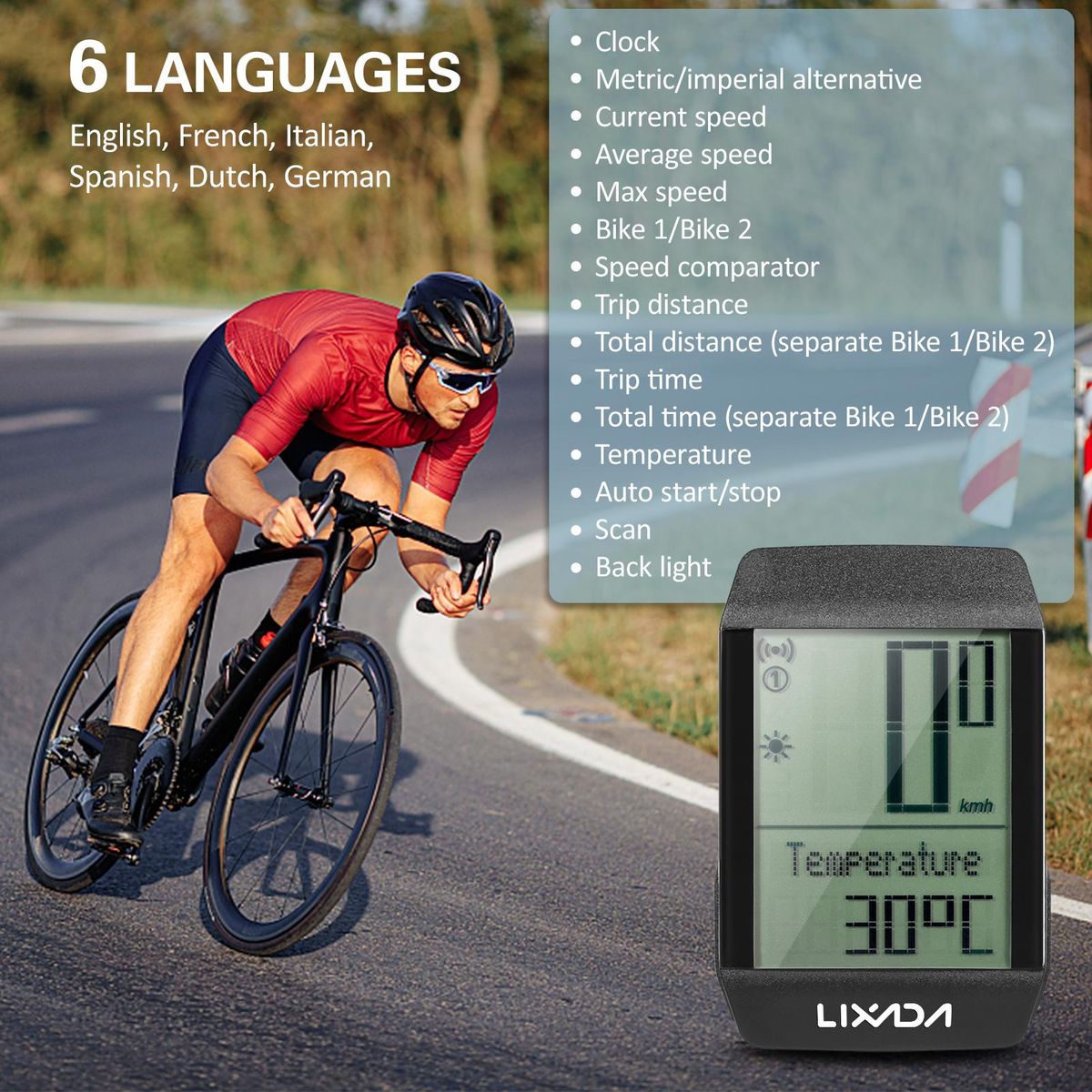 Buy Lixada Wireless Bike Cycling Computer Waterproof Bicycle Speedometer Odometer with 6 Languages LED Backlight in Nigeria