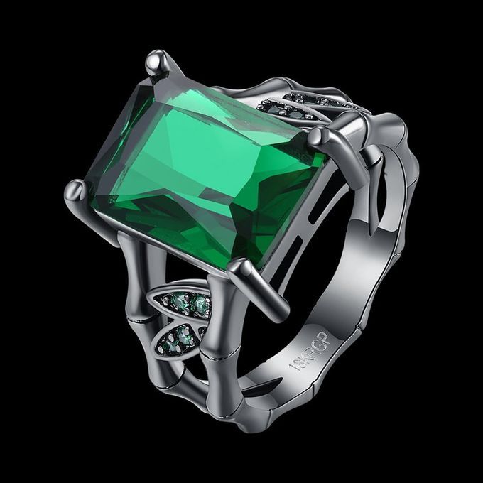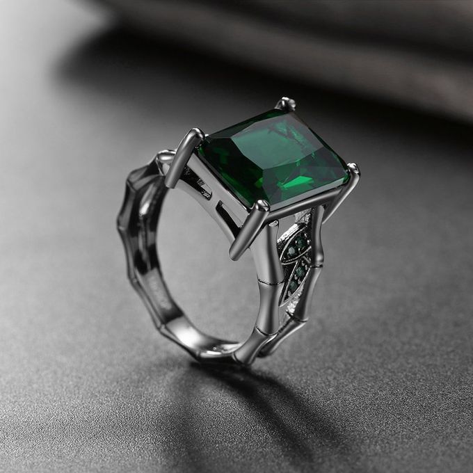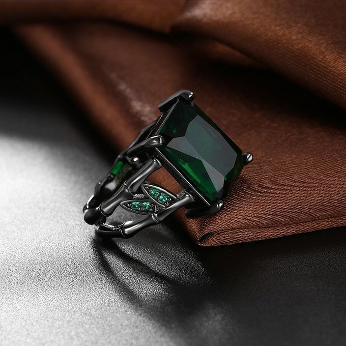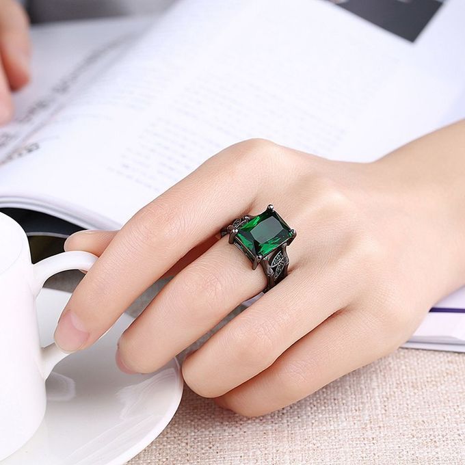 1*LKN18KRGPR1018 Women Fashion Reative Ring Wedding Bands For Anniversary-bla K & Green-LKN18KRGPR1018-A-9 9