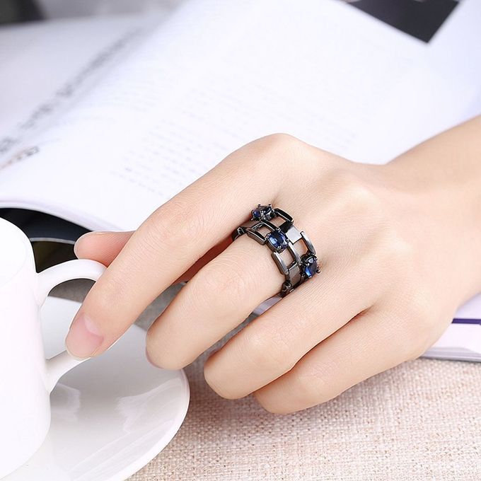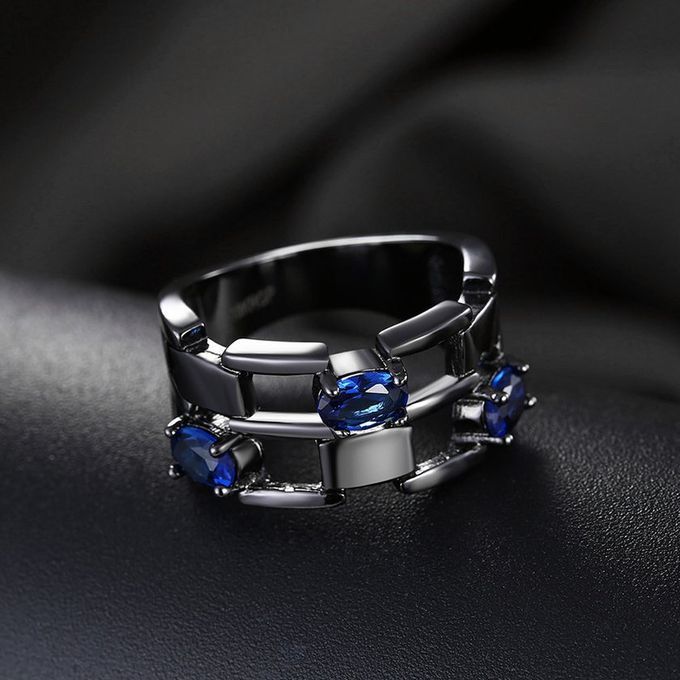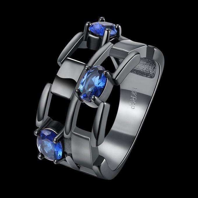 1*LKN18KRGPR1020 Women Dan Ing Parties Ring Wedding Bands For Anniversary-bla K & Blue-LKN18KRGPR1020- -7 7