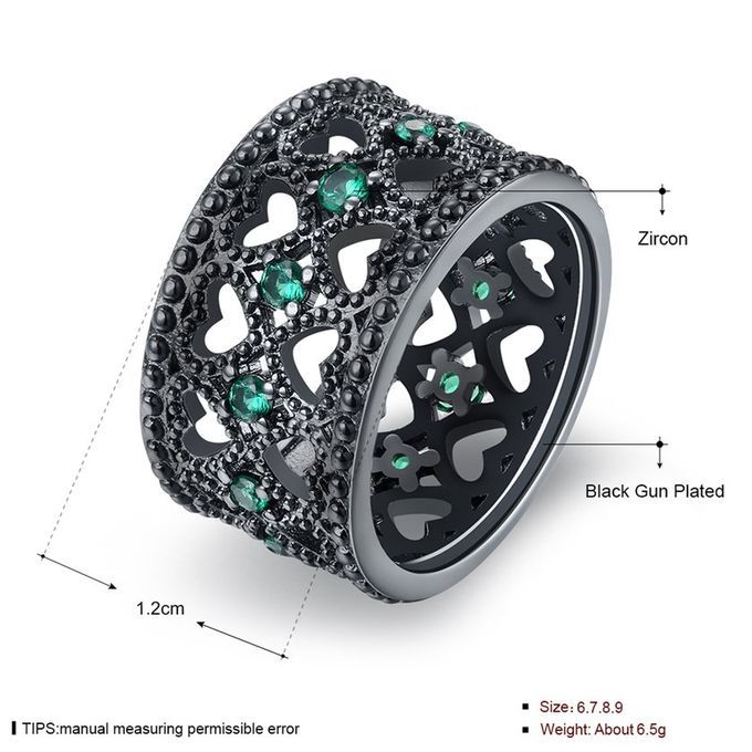 1*LKN18KRGPR1021 Women Heart Shape Hollow Out Ring Wedding Bands For Anniversary-bla K & Green-LKN18KRGPR1021-A-7 7