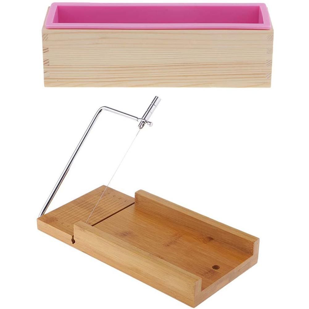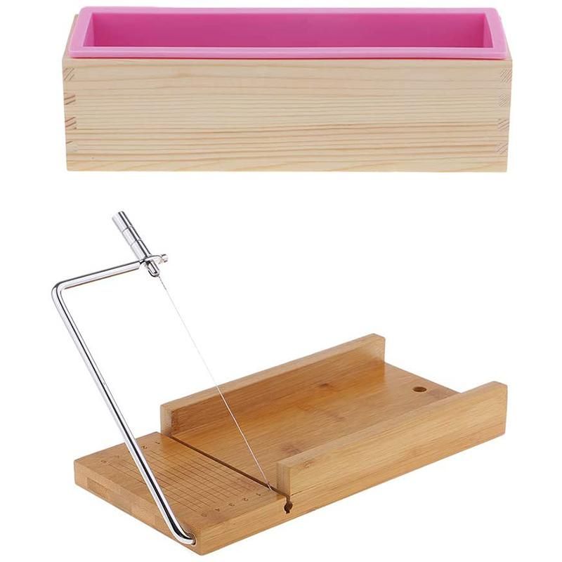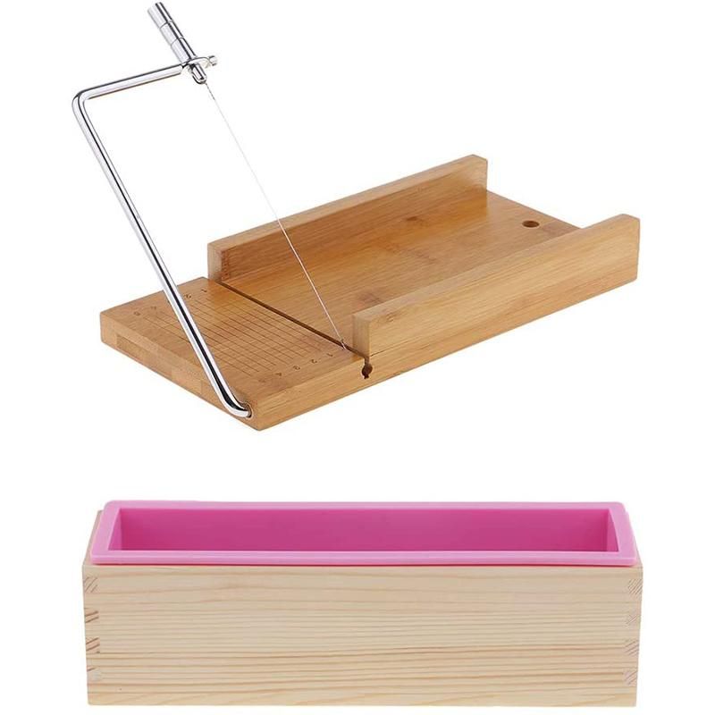 Loaf Soap Cutter + 1Pcs Rectangle Soap Silicone Loaf1 piece Wooden Soap Cutter with Wire Slicer+ 900ml Silicone Soap Making Loaf Mould with pine wood box .