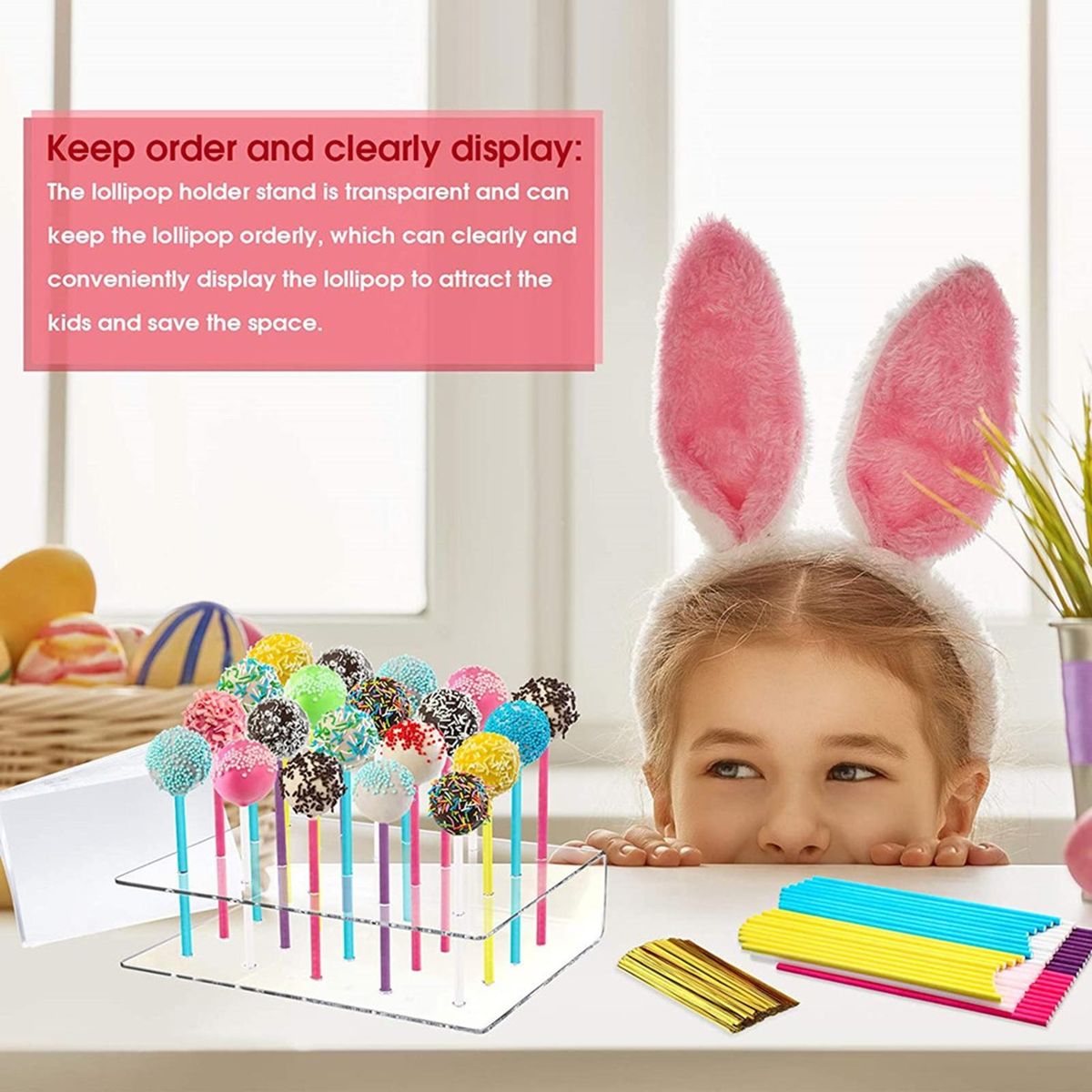 Our lollipop display stand, the perfect solution for showcasing your delicious lollipops in a stylish and organized manner. made from high-quality acrylic, this lollipop holder is not only durable but also easy to clean, ensuring a long-lasting and hygienic display option.