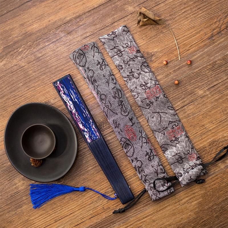 Buy Long Decorative Storage Bag Drawing Chinese Cover Retro Folding Ancient Case Eastern Style Pouch Shape Hand String Fan Gift in Nigeria