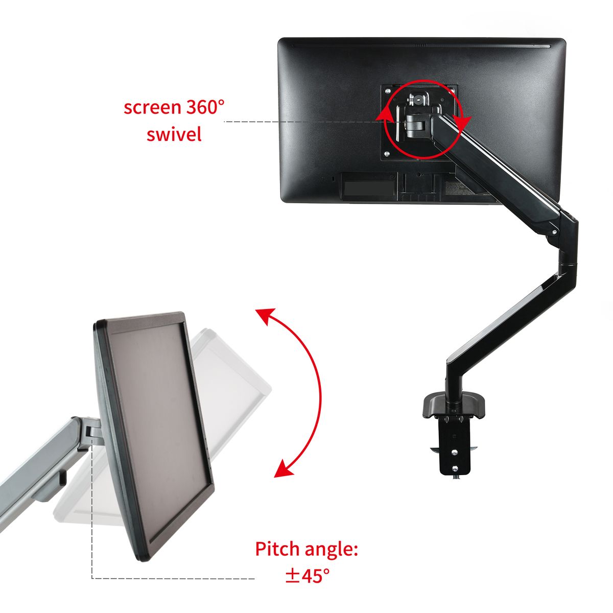 Enables your monitor to tilt, swivel and rotate to get an optimal view angle and position for effective work.