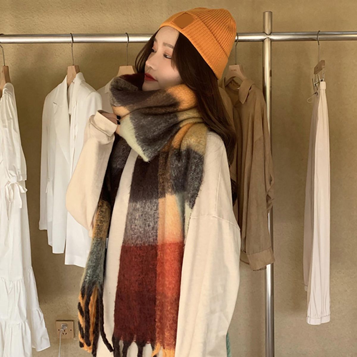 Women thickened long scarf is designed with classic plaid print, and is easy to wear and pair with any kinds of clothes.