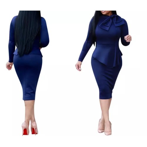 Buy Long Sleeve Bodycon Dress with Bow - Blue in Nigeria