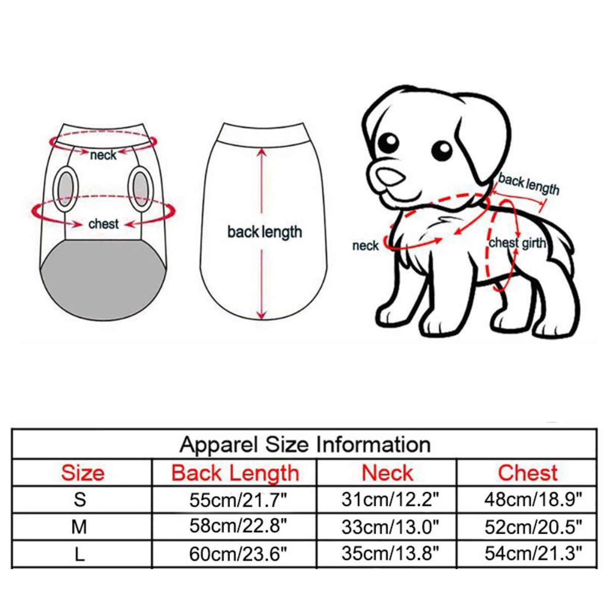 L: suit back length: 60cm/suit neck circumference: 35cm/suit chest circumference: 54cm