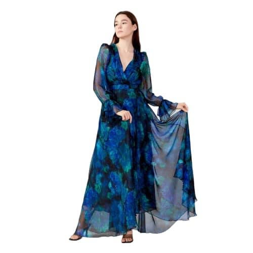 Buy Long Sleeve Maxi Chiffon Column Regular Multicolor Casual Dress in Nigeria